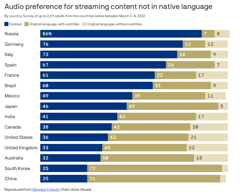 Netflix is the prime case study. Their investment in AI, like the DeepSpeak dubbing program, creates synthesized voices that sync with actors’ facial movements. Interestingly, Netflix’s strategy highlights a key market tension. While they’ve driven a 120% rise in dubbed content viewership, the preference for dubbing and subtitles varies widely between different regions.